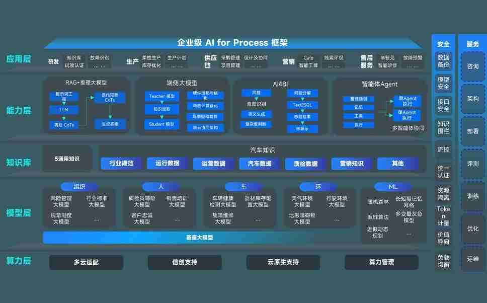 端到端的一站式AI工作空间深度融合了从企业战略规划到日常经营的全流程业务板块,,定向解决车企内部领域多、、、、部门多、、链条长、、、场景碎片化等难题,,支持车企快速构建以AI为核心的生产力写作体系,,实现任务执行与AI能力的无缝集成与交互